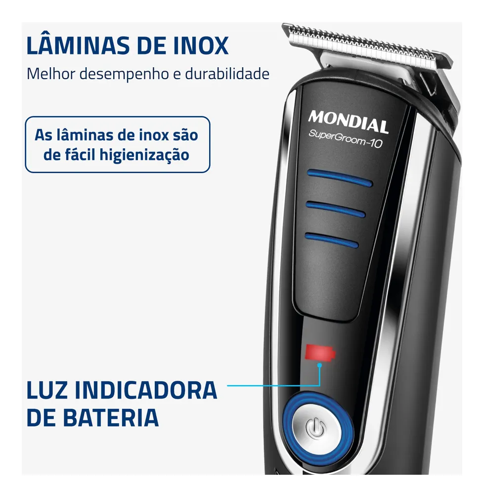 ✂️ Aparador Mondial Super Groom 10: O Seu Salão de Barbearia Completo em Casa