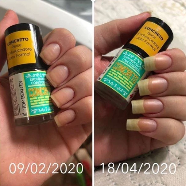 Sua fórmula exclusiva é enriquecida com Formol, o agente endurecedor mais eficaz, que atua aumentando a ligação das proteínas da queratina, criando uma barreira de proteção indestrutível.
