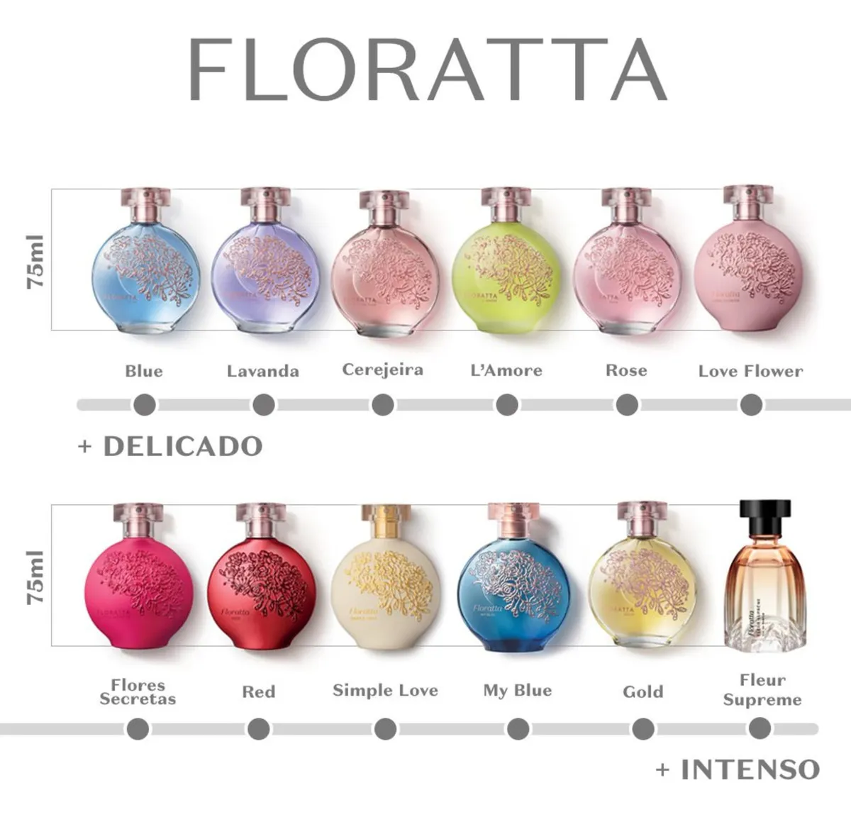 O que acontece quando o romantismo de Floratta se encontra com uma sofisticação moderna e inexplorada? O resultado é o Floratta My Blue, uma fragrância que convida você a redescobrir o romance com uma sensação de conforto e elegância sem esforço.