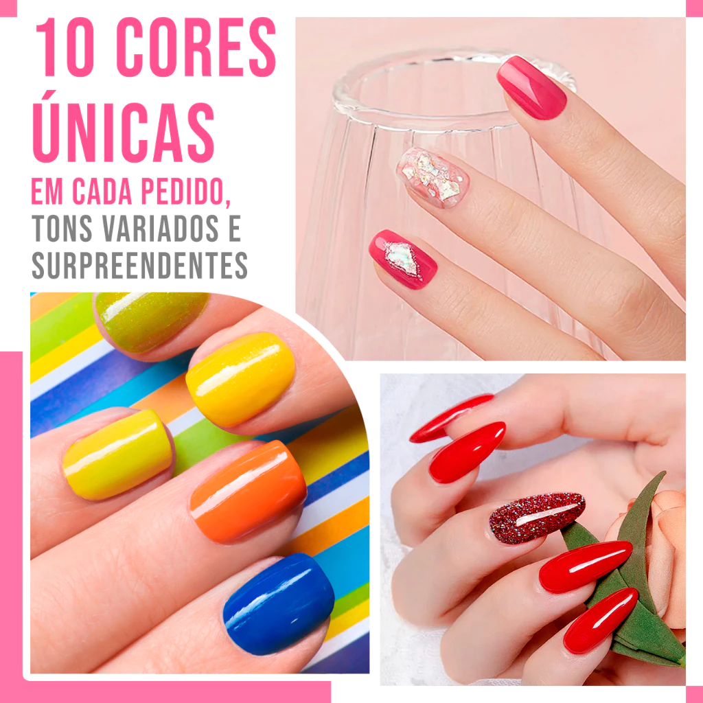 CORES QUE APAIXONAM, DURABILIDADE QUE IMPRESSIONA: Kit 10 Esmaltes em Gel Lirió Profissional! 💅✨