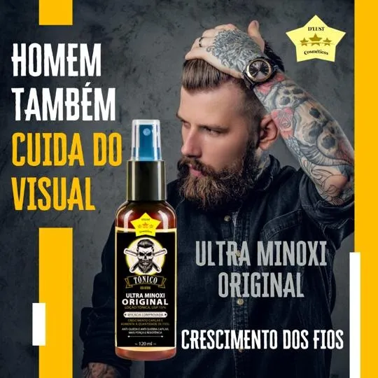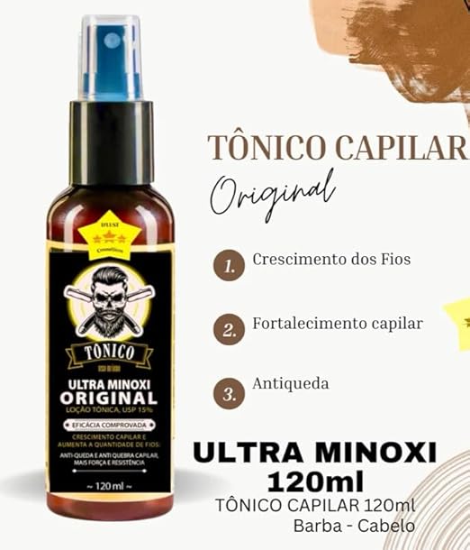 Cansado de olhar no espelho e ver falhas na barba ou o cabelo ficando ralo? O Tônico Ultraminoxi é a revolução tecnológica para quem busca o crescimento real dos fios. Com este kit exclusivo de 2 unidades (120ml cada), você garante o tratamento contínuo necessário para despertar os folículos adormecidos e conquistar o volume que sempre desejou. 🛡️🚀