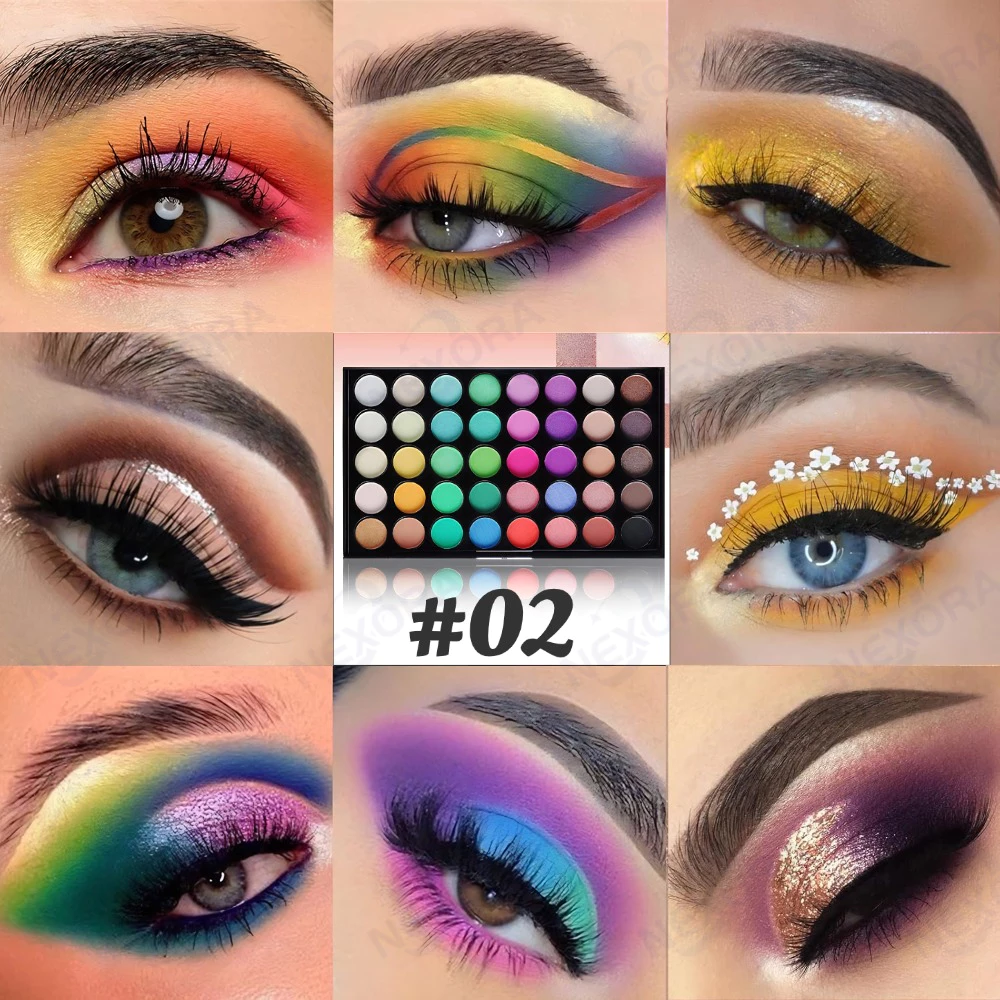 Por que escolher entre o básico e o ousado se você pode ter todos os estilos em uma única paleta? Com a nossa Paleta de 40 Cores, você tem em mãos a ferramenta definitiva para transformar o seu olhar. Da elegância do nude matte para o trabalho ao brilho explosivo do shimmer para a festa, esta paleta foi desenhada para acompanhar cada versão de você.
