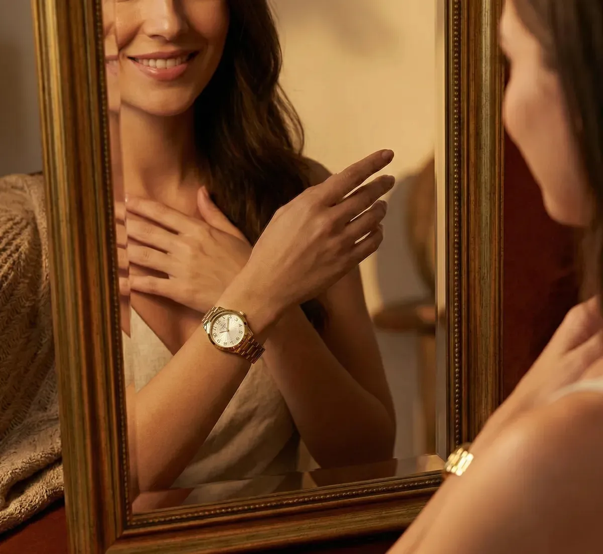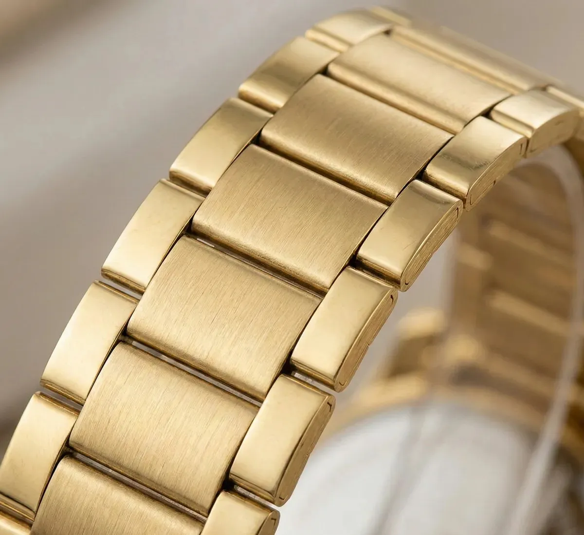 Aço Inoxidável Premium: A pulseira em aço garante resistência contra oxidação e mantém o banho dourado vibrante por muito mais tempo. É um investimento em durabilidade.